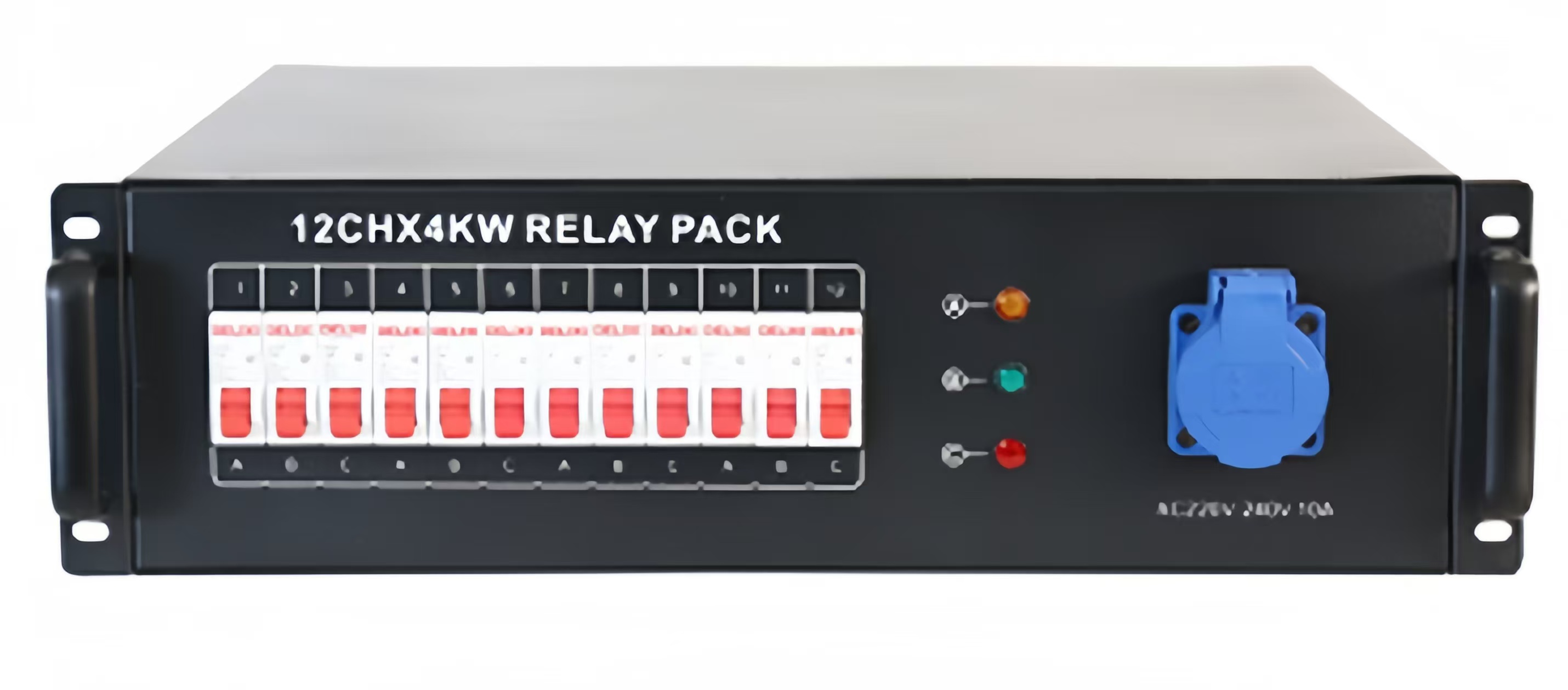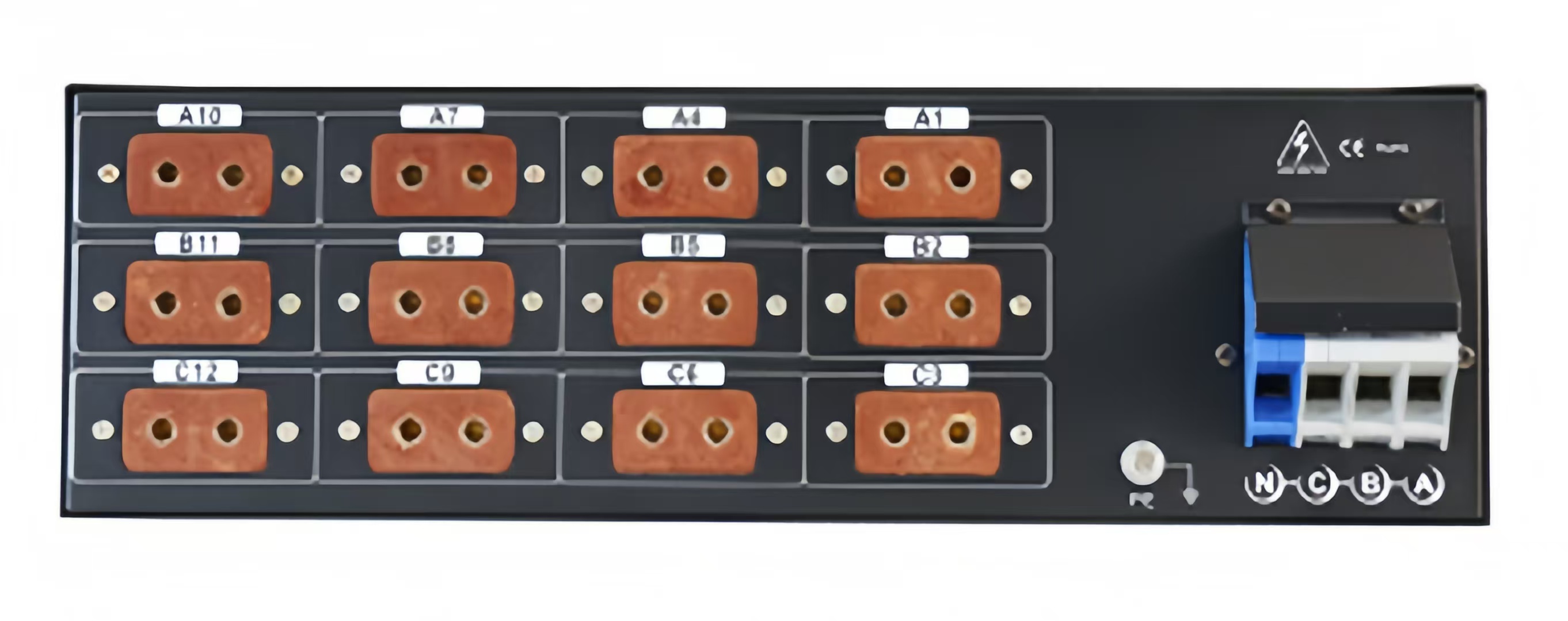A.B.C三相工作指示灯. 设两脚和三脚万能用插座方便使用,进口接线端输入,单40A胶木插输出。